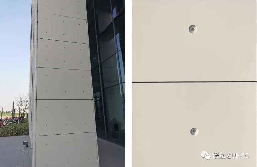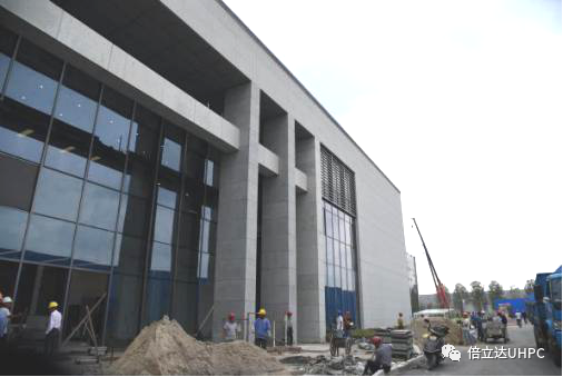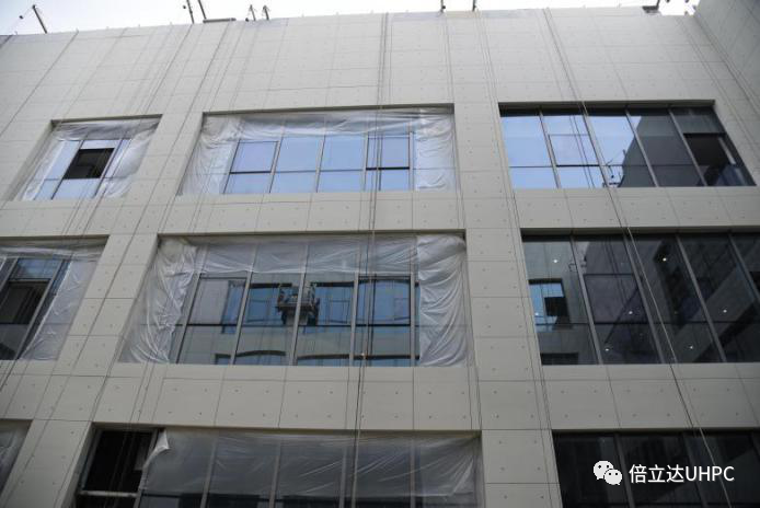 倍立达作为外墙施工单位,15000平方米的清水混凝土板也是在45天内(一个半月)生产安装完成的,有U型板及平板,板子大部分尺寸在900×1800mm;壁厚30mm,使用喷射及浇筑工艺方式相结合,自流平工艺,产品脱模后,经过养护期后出厂。